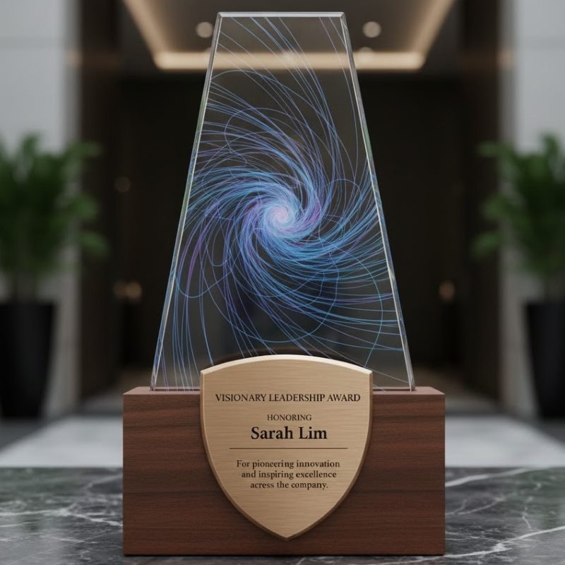 Each award is meticulously crafted using materials chosen for their minimal environmental impact, such as reclaimed wood, recycled glass, or bamboo. Our production processes prioritize reducing waste and energy consumption, ensuring that every award is as responsible as it is beautiful.