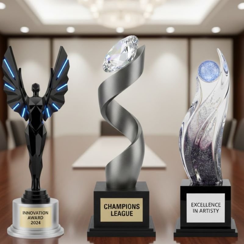 This award is intended for the “north stars” of your company—those individuals who lead by example and inspire others to reach higher. Its weight and premium feel provide a sense of prestige that honors years of service, major project completions, or quarterly leadership. The contrast between the organic wood and the shimmering recycled metal reflects the balance of grounded values and soaring ambition.