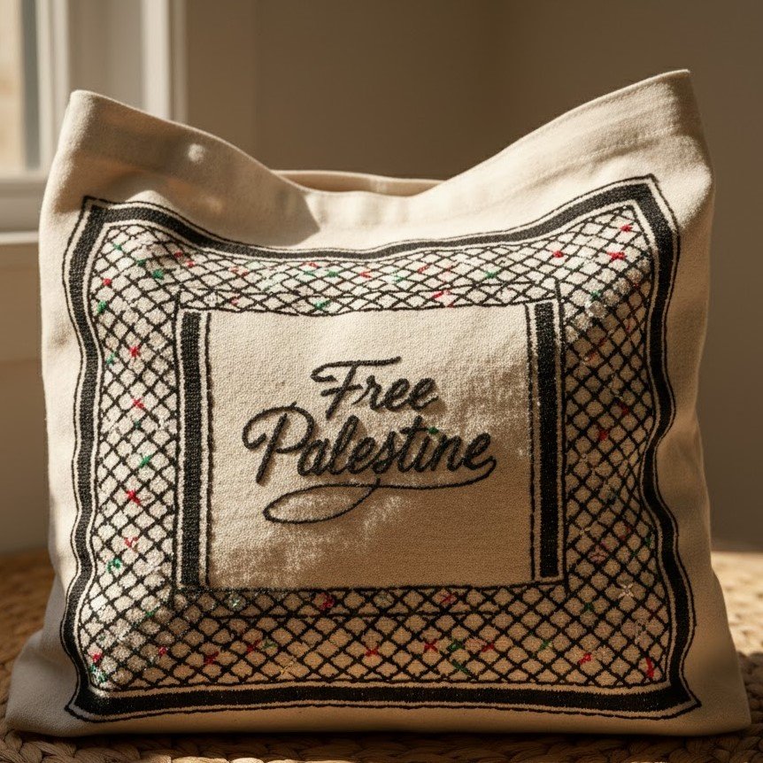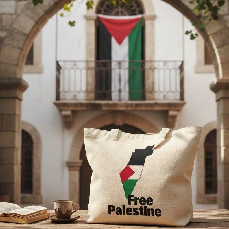 Beyond its beautiful aesthetics and practical design, this tote bag serves as a powerful symbol of solidarity and support for the Palestinian people. It’s an opportunity to carry a piece of their rich culture with pride, sparking conversations and raising awareness through its stunning visual narrative. It’s a blend of fashion, heritage, and advocacy.