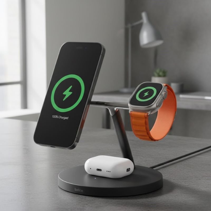 Electronics often contribute to visual and physical waste. Our wireless power charger is designed with a “less is more” philosophy, featuring a slim profile that integrates easily into any minimalist workspace. By providing a universal charging solution for phones and earbuds, it reduces the need for multiple proprietary cables, helping you maintain an organized, efficient, and plastic-reduced office environment.