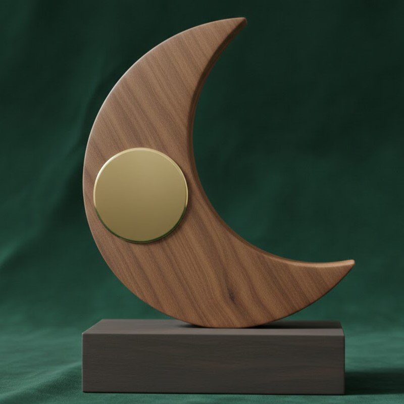 Each Wooden Moon Award is unique, featuring distinct grain patterns that make every piece a one-of-a-kind treasure. Our precision laser engraving allows for crisp, detailed logos and personalized messages directly onto the wood surface. The weighted base provides a premium feel, ensuring it stands prominently on any desk or mantel as a proud reminder of a job well done.